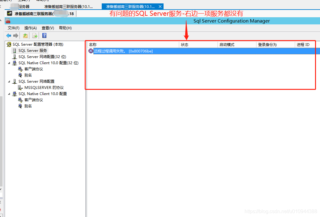 SQL server 配置管理器-SQL server 服务-远程过程调试失败 [0x800706be]