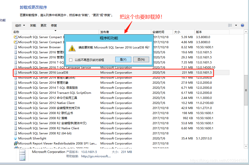 下载完了现象依旧!把下面这个Microsoft SQL Server 2016 LocalDB也跟着卸载掉!