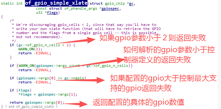 此函数是公用的回调函数,如果控制器定义了自己的xlate函数则使用控制器自身的,如果没有就会使用此函数。到这里gpio的解析流程就基本走完了,对gpio子系统认识进一步加深。