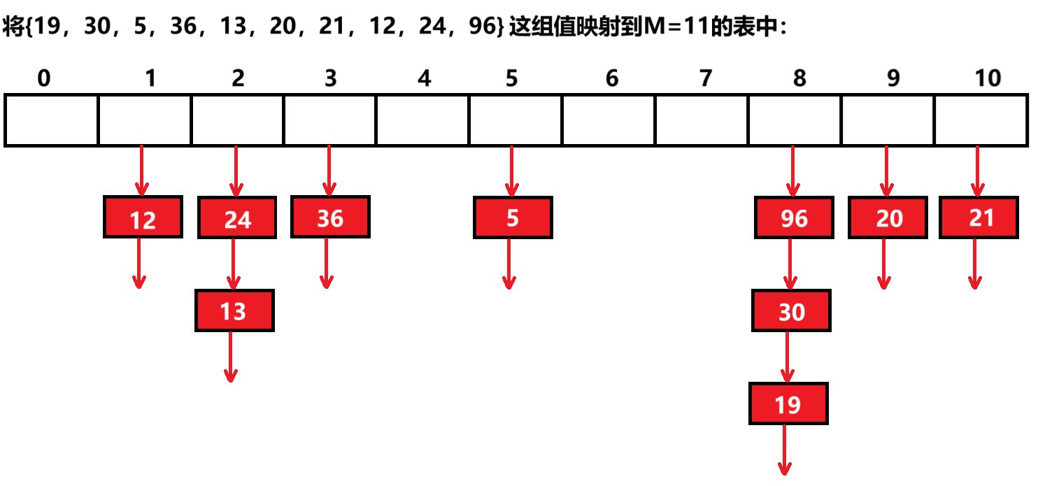 - 若M=12(合数),key=6、12、18、24的公约数都是6,哈希值全为0,冲突暴增;