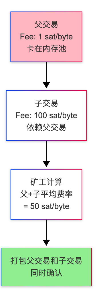 结果: 矿工为了获得子交易的高费用,必须先打包父交易