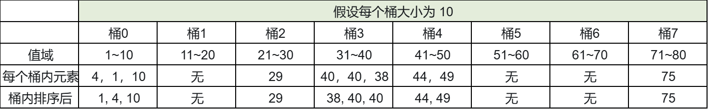 然后,进行每个桶内排序,如果桶内元素较少可以使用【插入排序】,元素较多使用【快速排序】或【归并排序】: