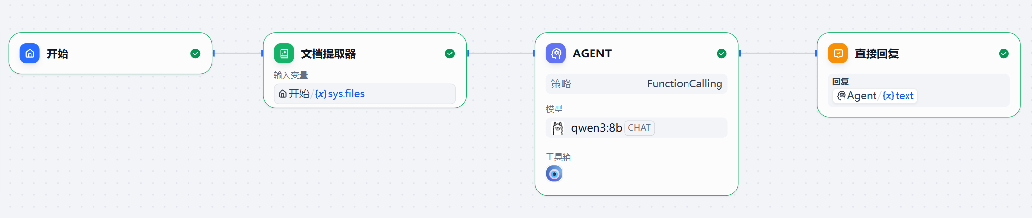 现在可以创建Dify智能体了,在新建一个Chatflow工作流,并按如下方式编排节点。