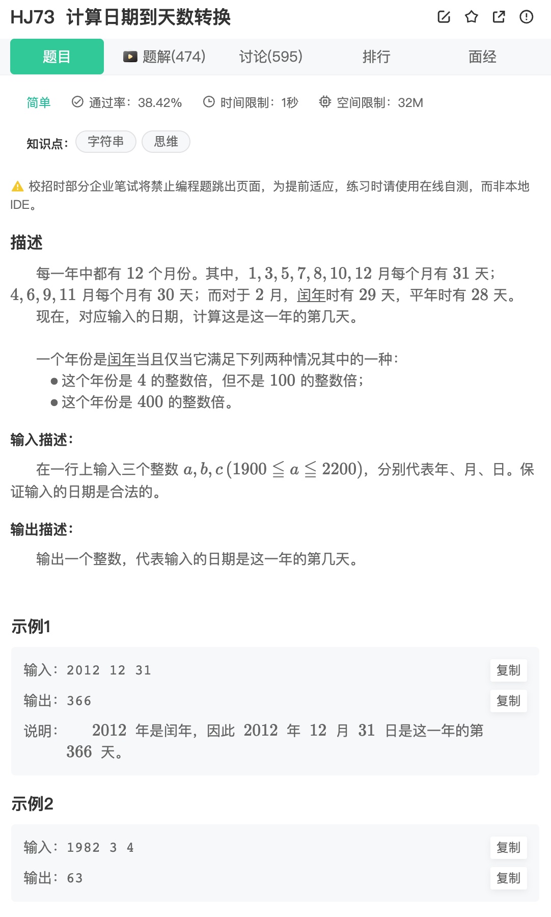 // 计算date(YYYYMMDD)对应的"当年第几天"