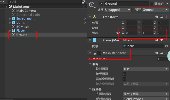 导入环境、灯光预设,创建背景音乐物体,隐藏 Unity 自带灯光