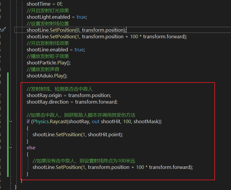 //发射射线,检测是否击中敌人