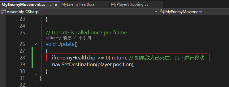 if(enemyHealth.hp <= 0) return; // 如果敌人已死亡,则不进行移动