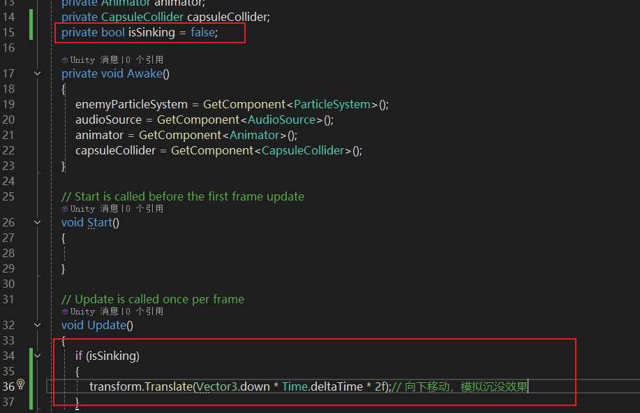 transform.Translate(Vector3.down * Time.deltaTime * 2f);// 向下移动,模拟沉没效果