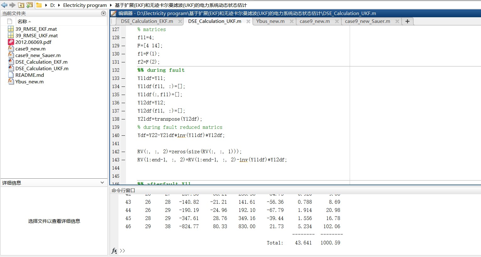 通过以39节点系统为算例,利用上述EKF和UKF方法进行动态状态估计,验证了这两种方法在电力系统状态估计中的有效性。这不仅有助于我们更好地理解电力系统的运行动态,也为实际工程应用提供了理论和方法支持。希望大家在复现过程中能进一步探索和优化这些算法,为电力系统的发展贡献自己的力量。