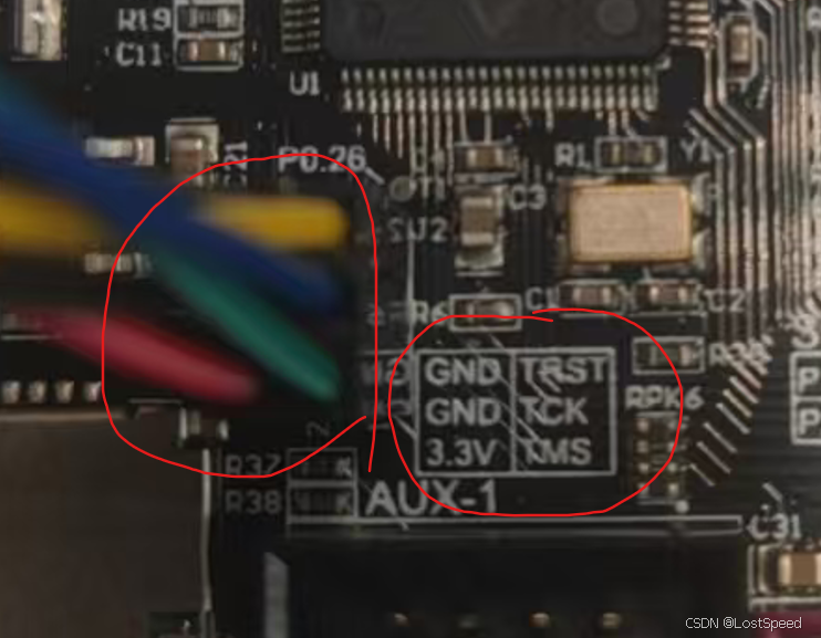 没有缺口这边,接了RESET, SWDIO, SWCLK