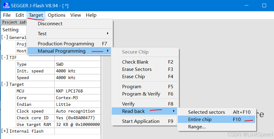 我现在板子和连接都是正常的,就用J-Flash V8.94来测试。