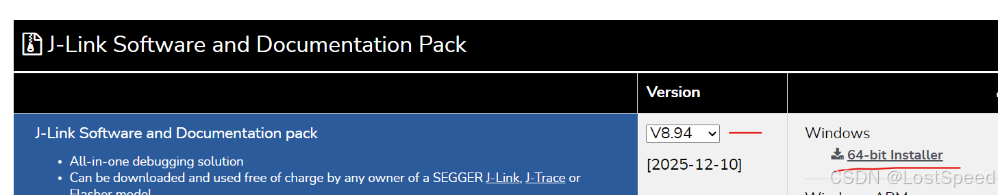当前最新版为v8.94, 下载后为JLink_Windows_V894_x86_64.exe,安装JLink_Windows_V894_x86_64.exe.