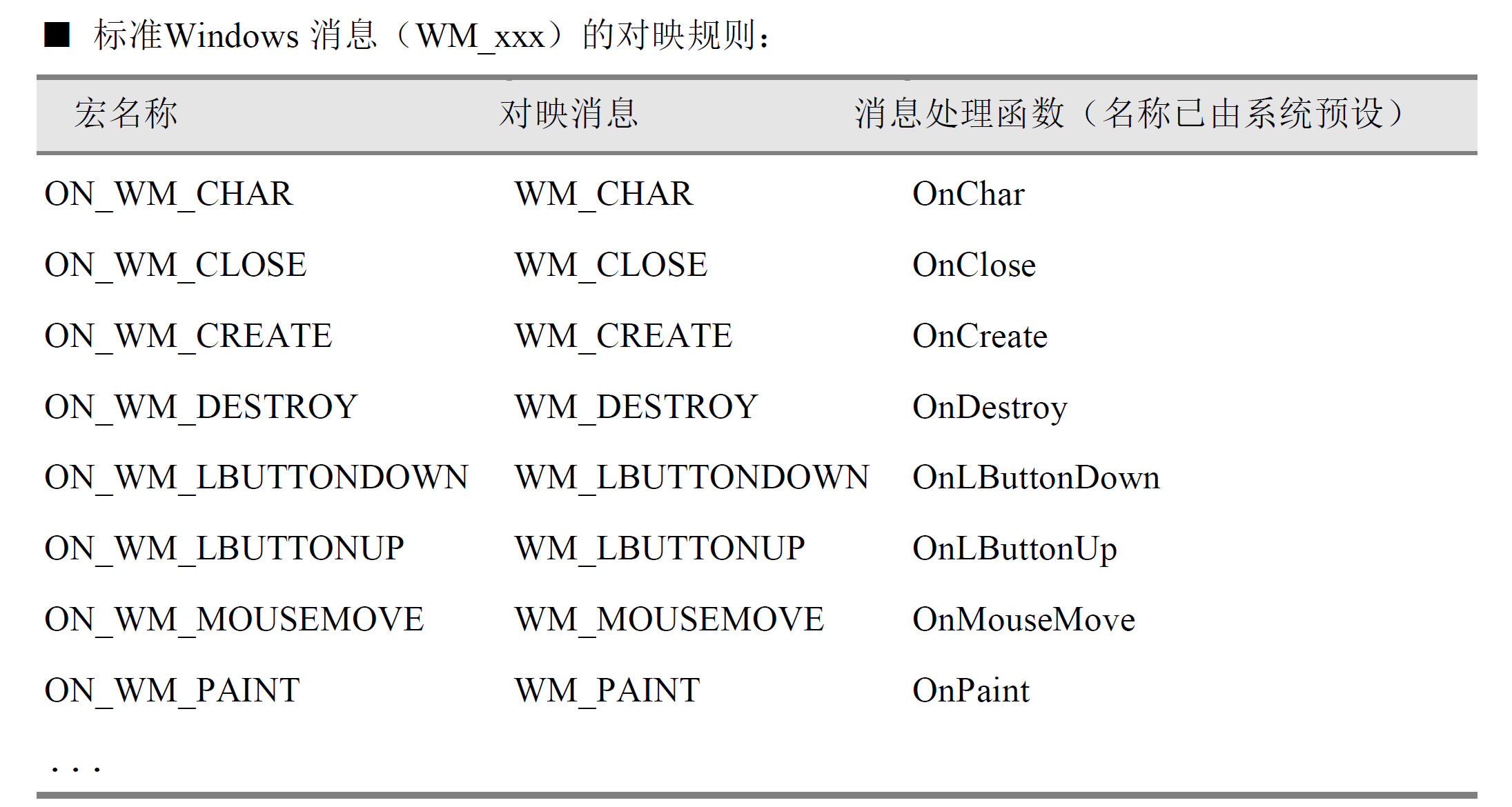 各个消息处理函数均应以afx_msg void 为函数型式。