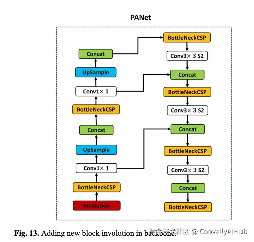 在involution块内部,每个像素生成一个唯一的核,该核统一应用于所有通道。然后,该核通过卷积与输入特征图结合。最后,一个求和聚合步骤整合了相邻像素上提取的特征,保留了空间上下文并提高了检测精度。