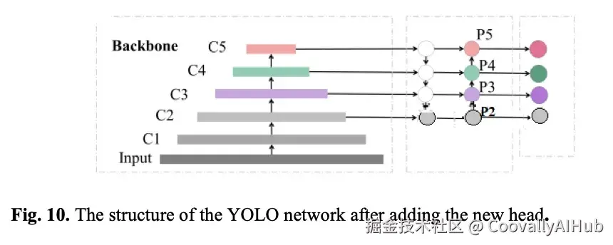 针对小目标"消失"问题,研究团队在传统 YOLO 的三个检测头(P3、P4、P5)基础上,增加了一个更高分辨率的检测头。这个额外的检测头专门负责捕捉更细微的特征,确保小目标在特征图中"有迹可循"。