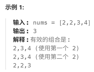 System.out.println(solution3.triangleNumber(nums1)); // 预期3