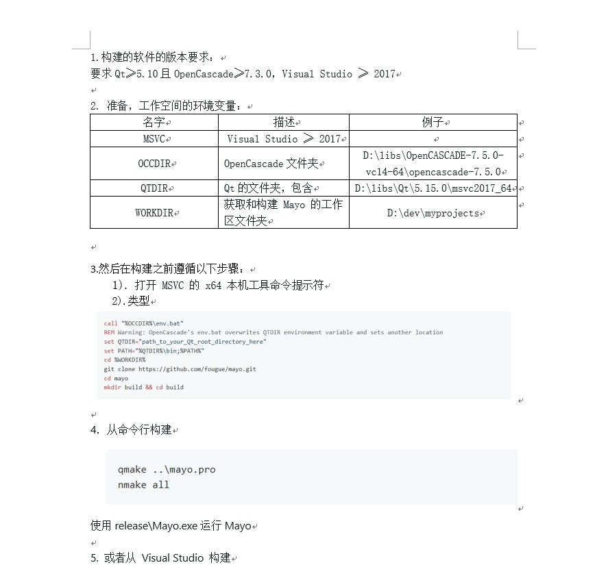 不过,想要顺利搭建起这个工具,最主要的难题可能就是配置OpenCascade的环境了。这里先给大家梳理一下源码构建的基本要求。在Windows系统下,如果使用MSVC,那Visual Studio的版本得≥2017,Qt版本要≥5.10,OpenCascade也得≥7.3.0 。下面咱们简单说说代码相关的东西。