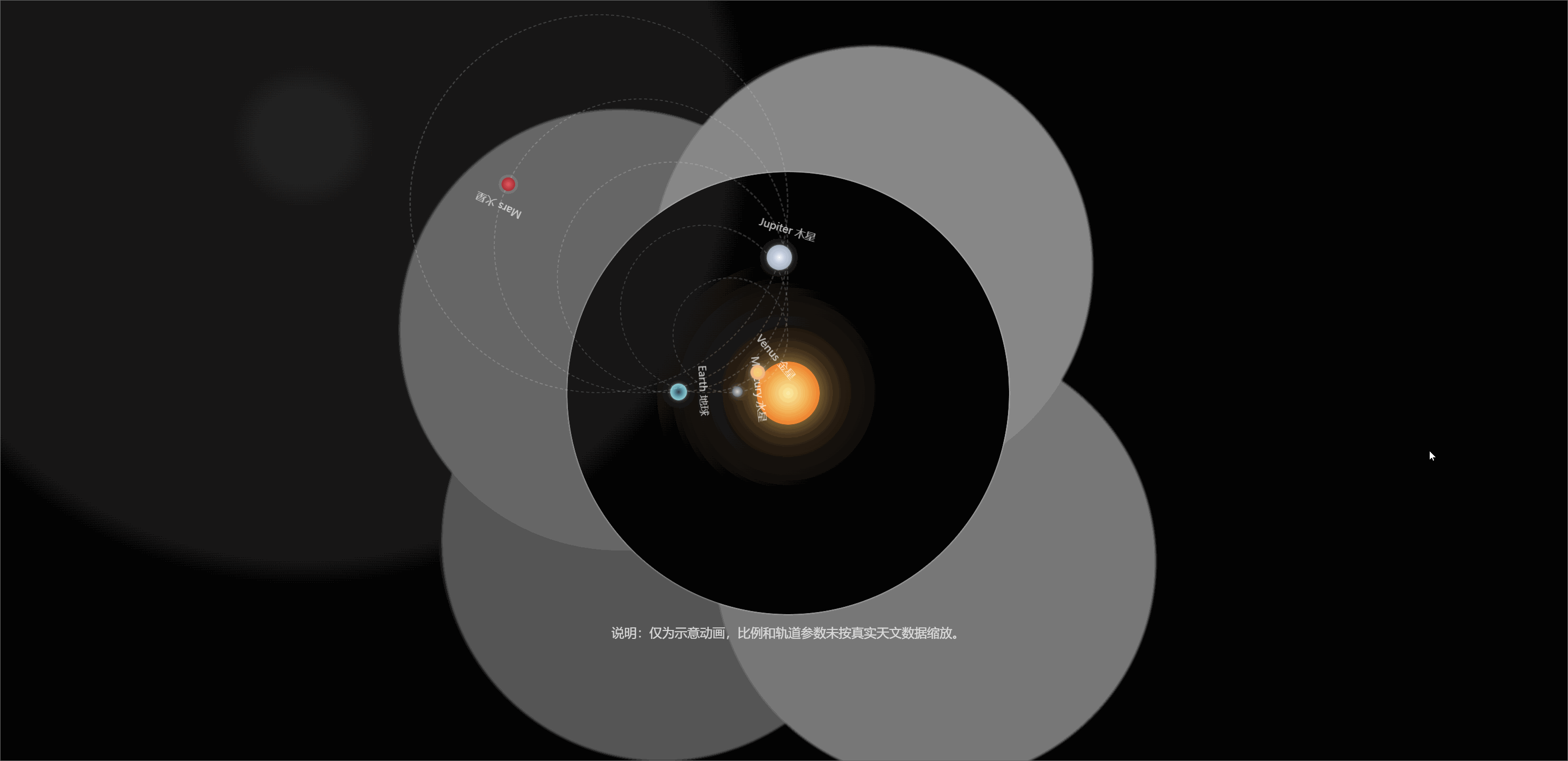<div class="hint">说明:仅为示意动画,比例和轨道参数未按真实天文数据缩放。</div>