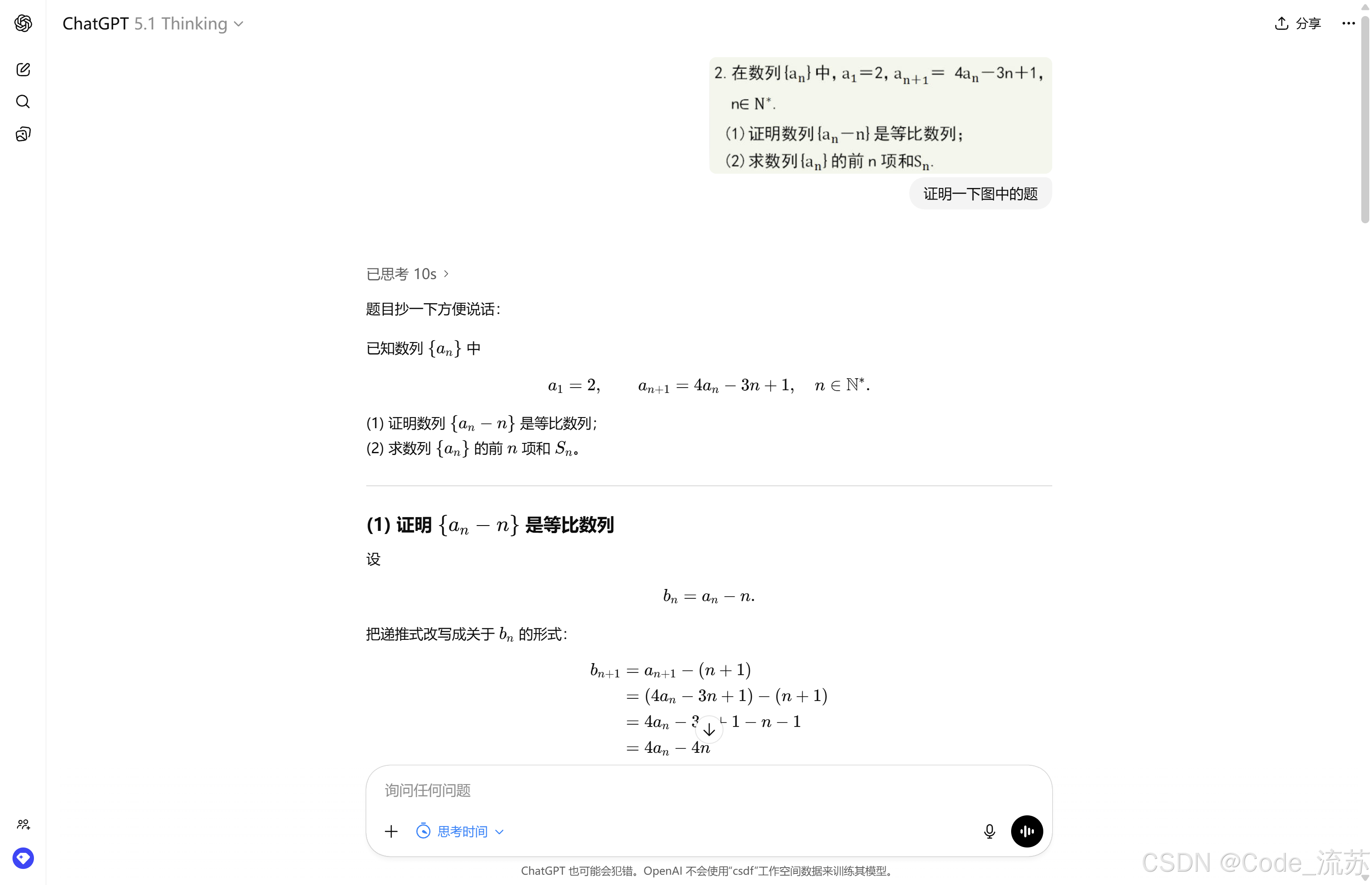 GPT-5.1 Thinking的回复:步骤清晰,两个证明均正确。