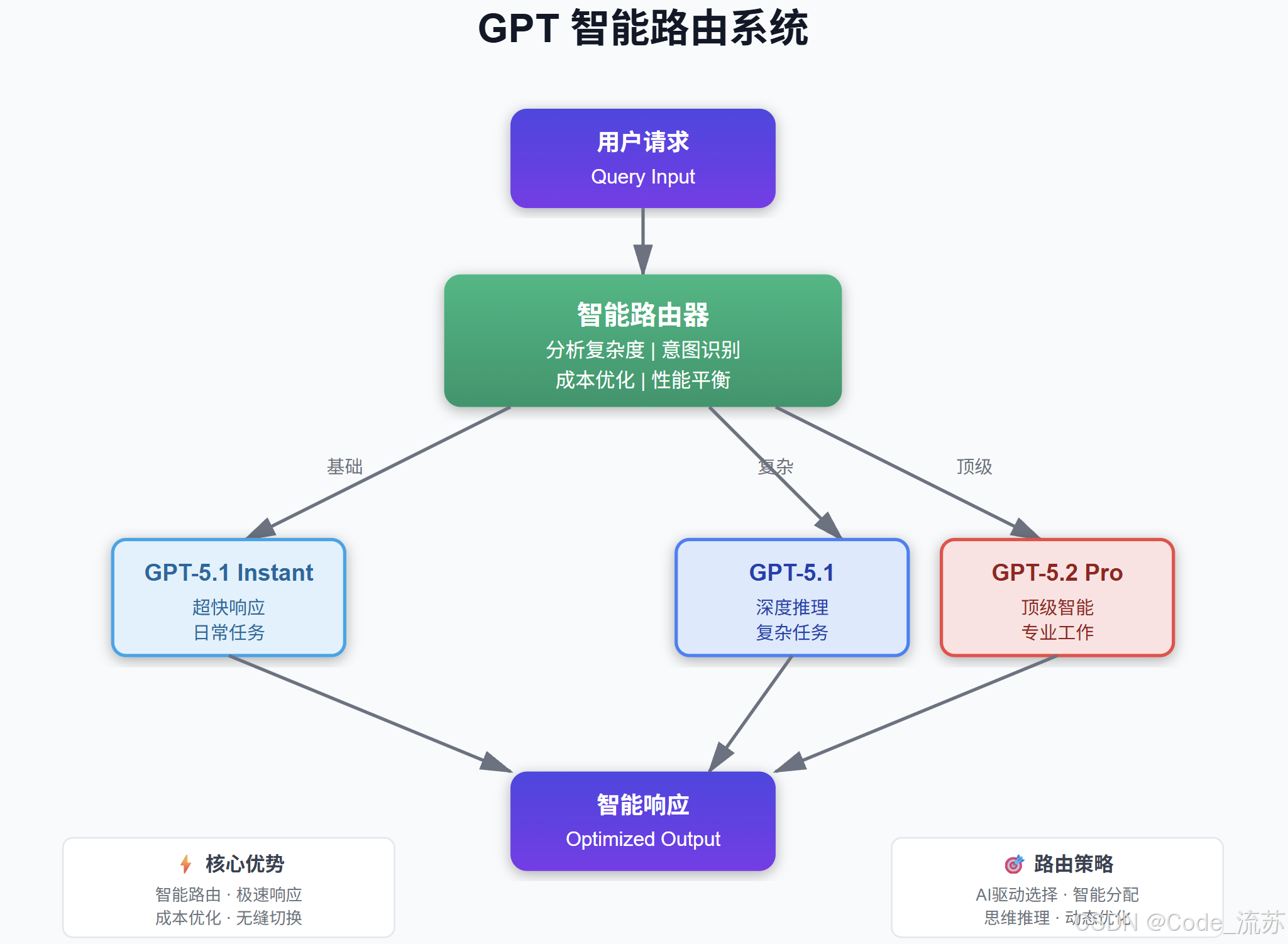 最巧妙的是两者之间的"智能路由"机制。系统会在后台分析你的问题,然后无缝地将请求分配给最合适的模型。这个过程对用户来说是完全透明的------你只需要提问,剩下的交给AI自己决定。