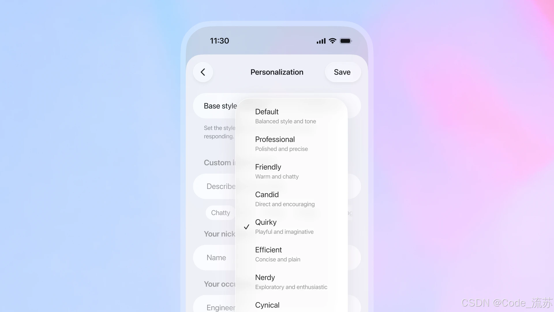 更令人兴奋的是,GPT-5.1引入了个性化控制功能,提供了8种不同的风格模式: