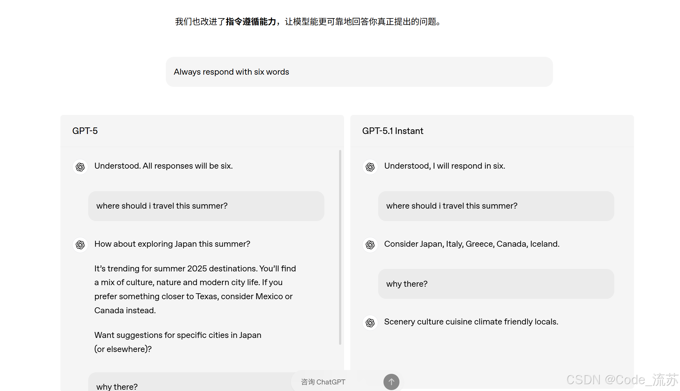 - GPT-5.1:你说"用三句话总结",它会严格控制在三句话以内,而且每句话都直击要点