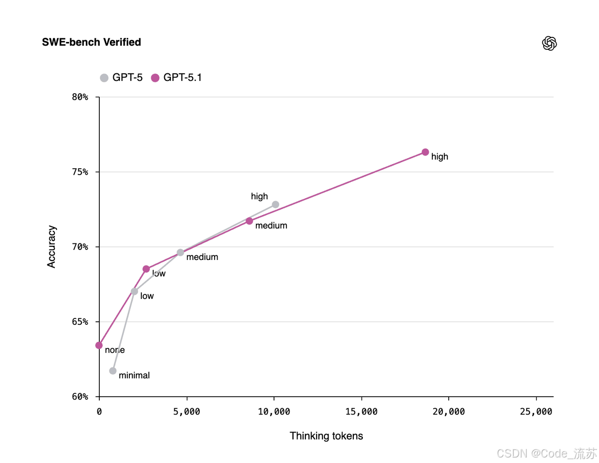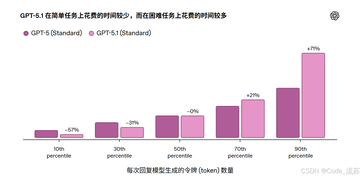在复杂推理任务中,GPT-5.1通过自适应机制,会花更多时间思考,因此答案质量更高。