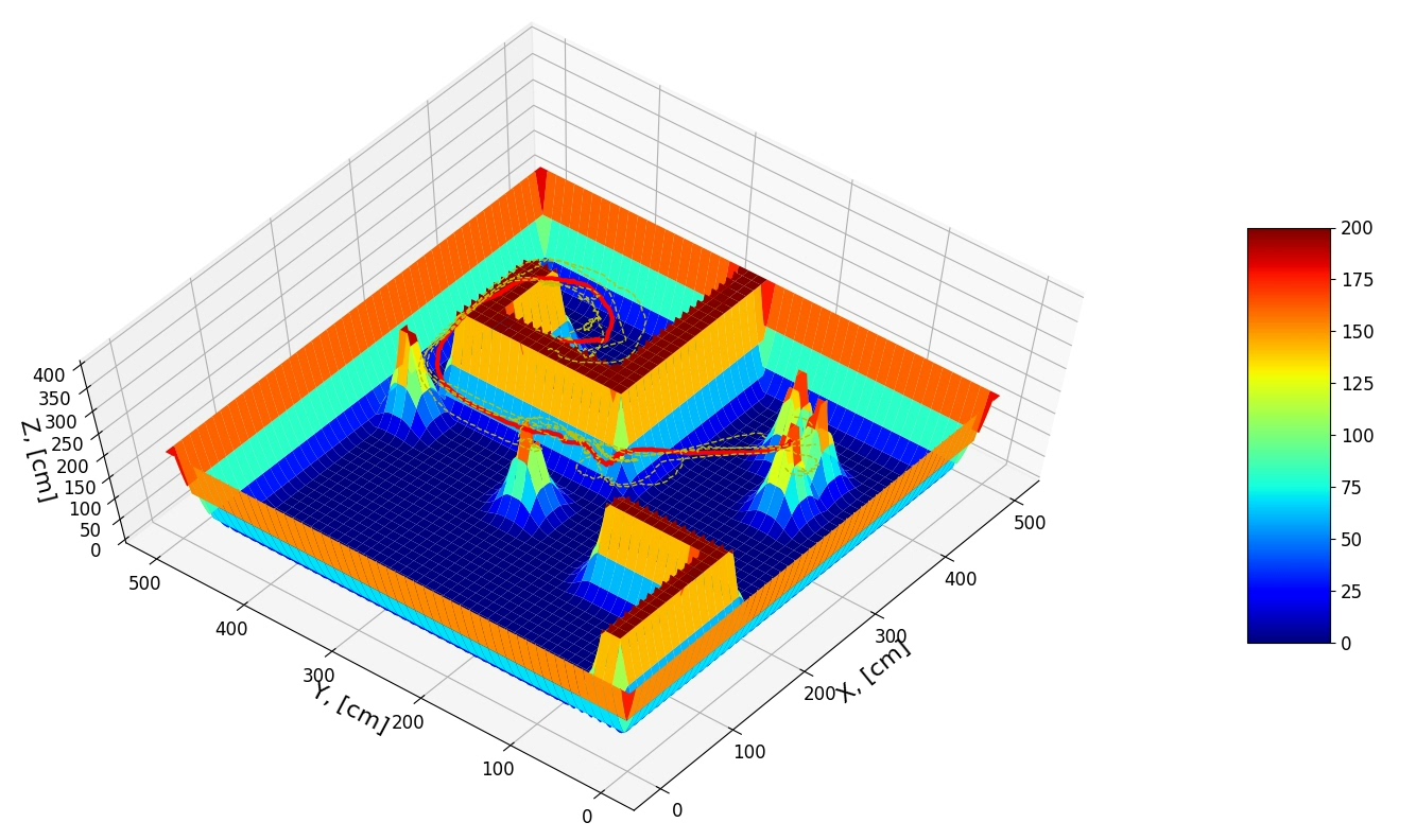 一种结合RRT与人工势场法APF的无人机编队动态避障控制 该模型采用快速搜索随机树算法(RRT)与人工势场法(APF)实现无人机动态避障的路径规划,并根据环境条件的要求重塑编队的几何形状。 实验证明了在有静态和移动障碍物的混乱环境中精确导航无人机编队的可能性。 注意:本模型为python代码,源于国外卡梅隆大学,包含完整代码与paper。 此外,还附参考文献