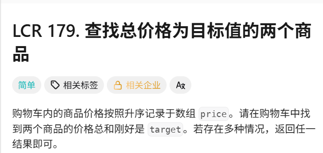 a. 初始化 left,right 分别指向数组的左右两端(这里不是我们理解的指针,而是数组的下标)b. 当 left < right 的时候,一直循环i. 当 nums[left] + nums[right] == target 时,说明找到结果,记录结果,并且返回;ii. 当 nums[left] + nums[right] < target 时: