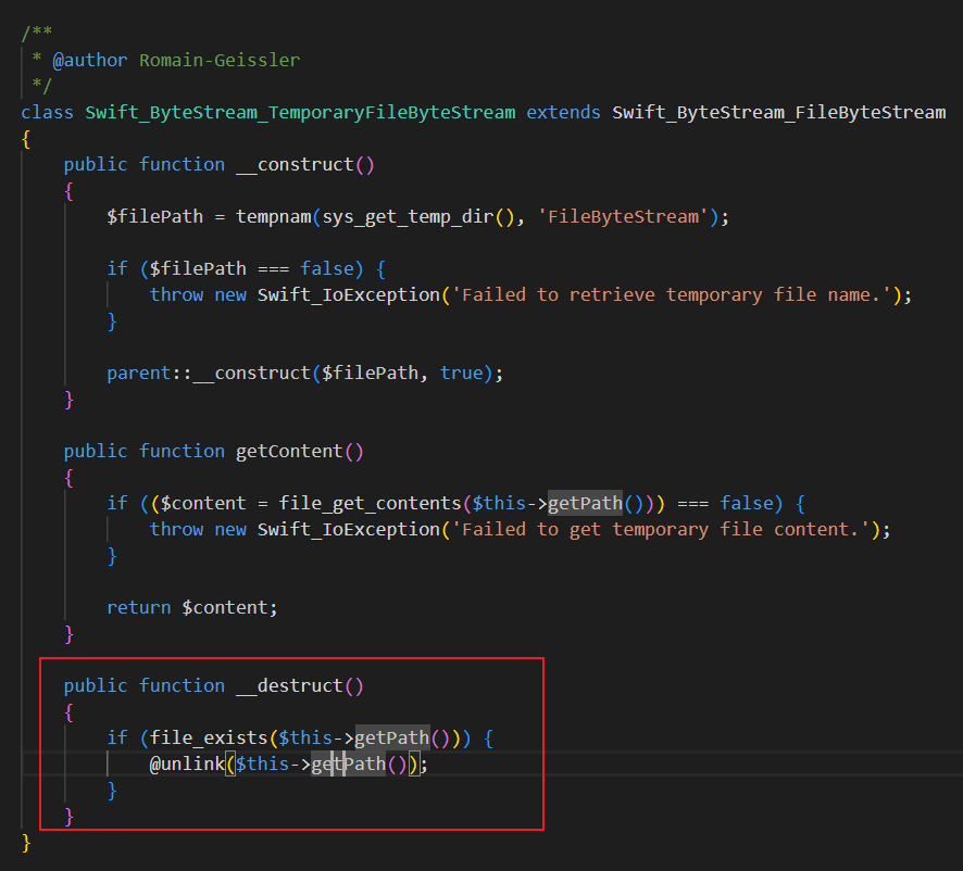 $a = serialize(new Swift_ByteStream_TemporaryFileByteStream());