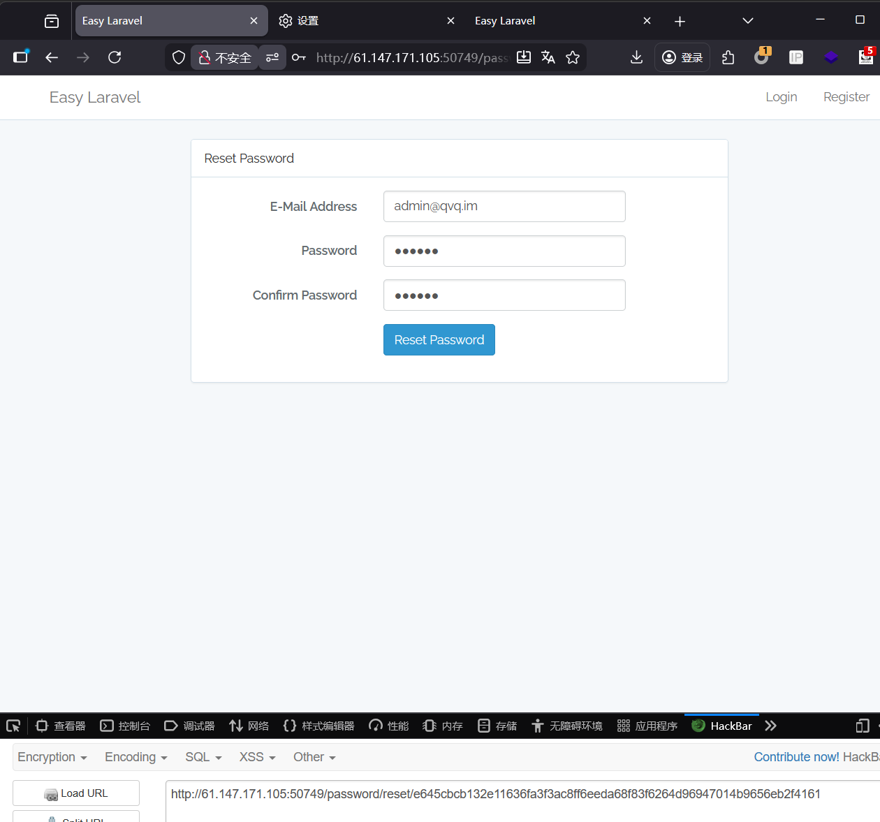 先访问**/password/reset重置admin密码,然后注出token,访问/password/reset/[token]**,完成重置