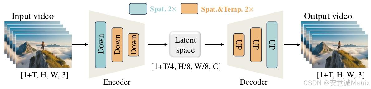 - 橙色模块(Spat.&Temp. 2×):同时做空间+时间下采样 (分辨率、时间帧各缩2倍)。