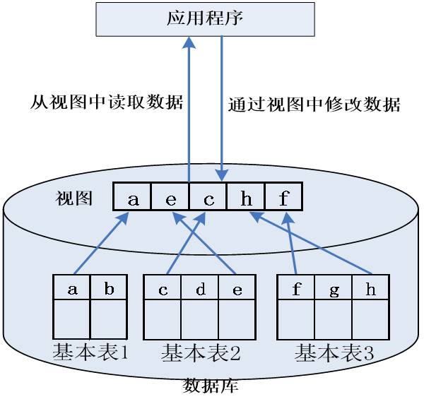 视图同真实的表一样,视图也是由若干个字段以及若干条记录构成。但是,视图并不保存数据,保存的仅仅是一条select语句,视图中的源数据都来自于数据库表,数据库表称为基本表或者基表,视图称为虚表。视图所引用的表由行和列数据自由定义,并且在引用视图时动态生成。