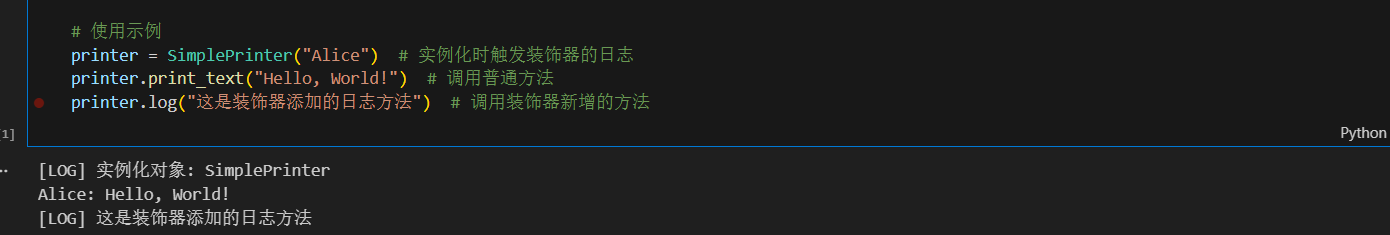 printer.log("这是装饰器添加的日志方法") # 调用装饰器新增的方法