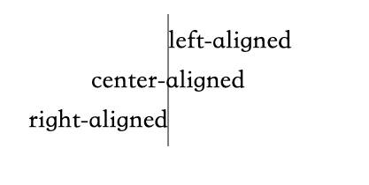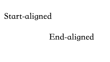 left:文本左对齐。right:文本右对齐。center:文本居中对齐。start:文本对齐界线开始的地方(左对齐指本地从左向右,右对齐指本地从右向左)。end:文本对齐界线结束的地方(左对齐指本地从左向右,右对齐指本地从右向左)。