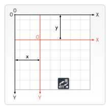 如上图所示:左上角为原点,水平往右为 X 轴的正坐标延伸,垂直向下为 Y 轴的正坐标延伸;
