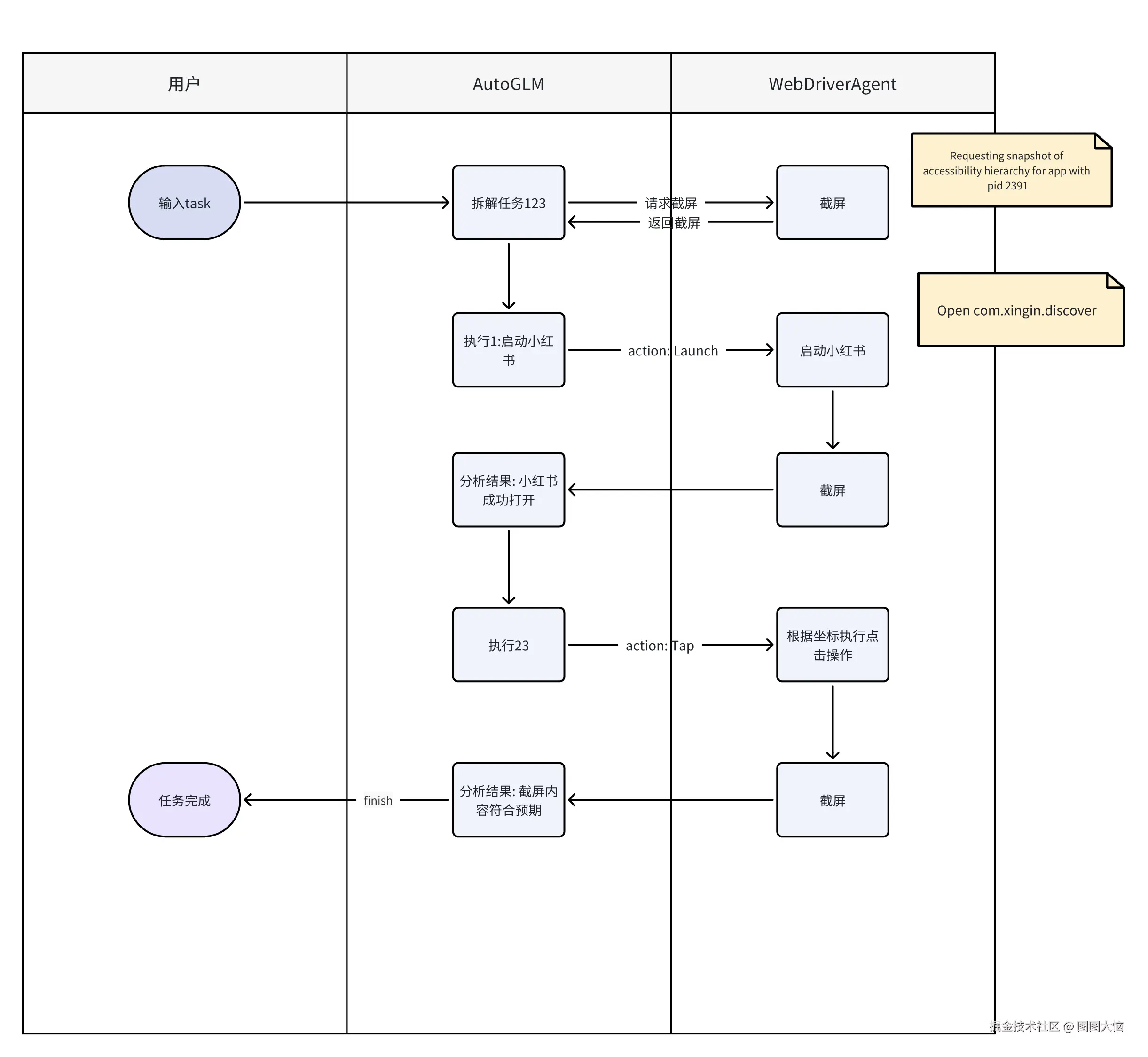 - 首先它进行拆解任务: 启动小红书、找到搜索功能、输入搜索内容