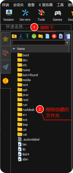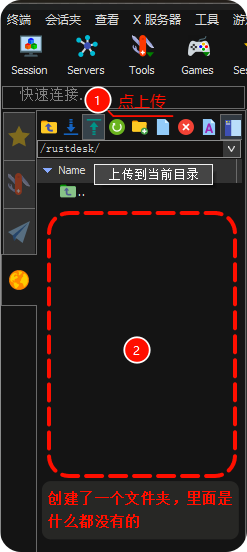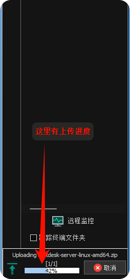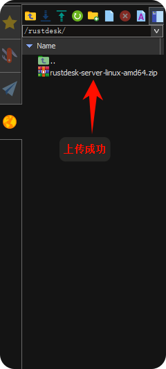 下图:把下载好的服务端程序rustdesk-server-linux-amd64.zip上传到rustdesk文件中