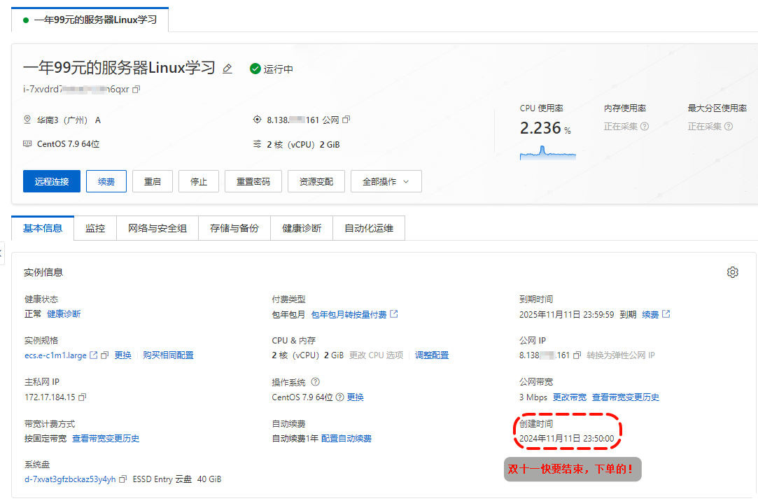 [爽歪歪的99元一年ECS云服务(一般只有双十一或618才有)]