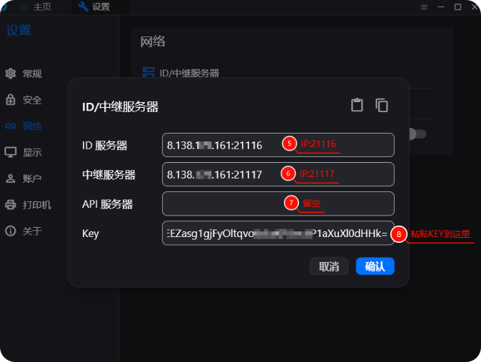 ID服务器:域名:21116(没有www也没有http,要提前做了域名解析,解析到阿里云公网IP)