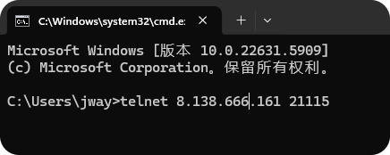 #阿里云公网IP空格端口号(按顺序一条命令,一条命令逐个执行,如果能跳转代表OK)