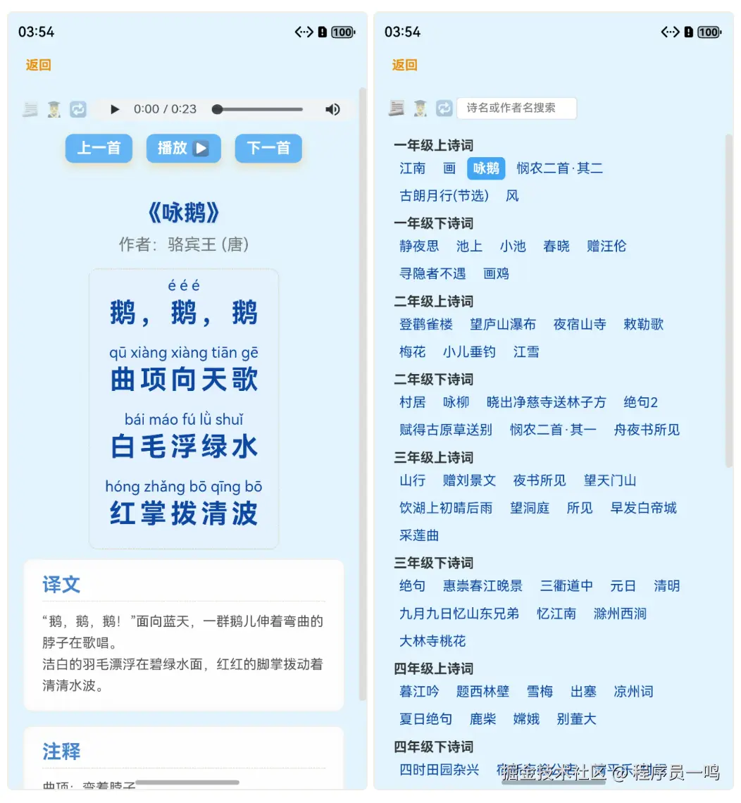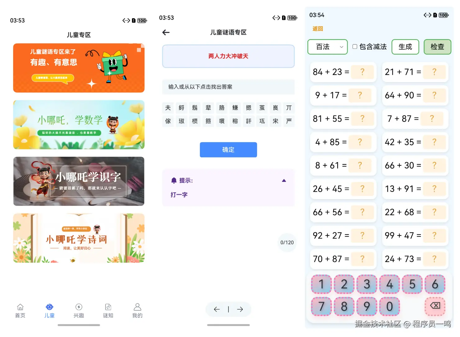于是,就开启了我的第五次修改之路,摒弃了传统的思维,拓展了一个儿童专区,专门为儿童服务,设计了儿童闯关谜语,除此之外,还借用了开源项目,新增了儿童学数学,学诗词,学识字功能,这一次,增加的功能可谓是十分丰富。