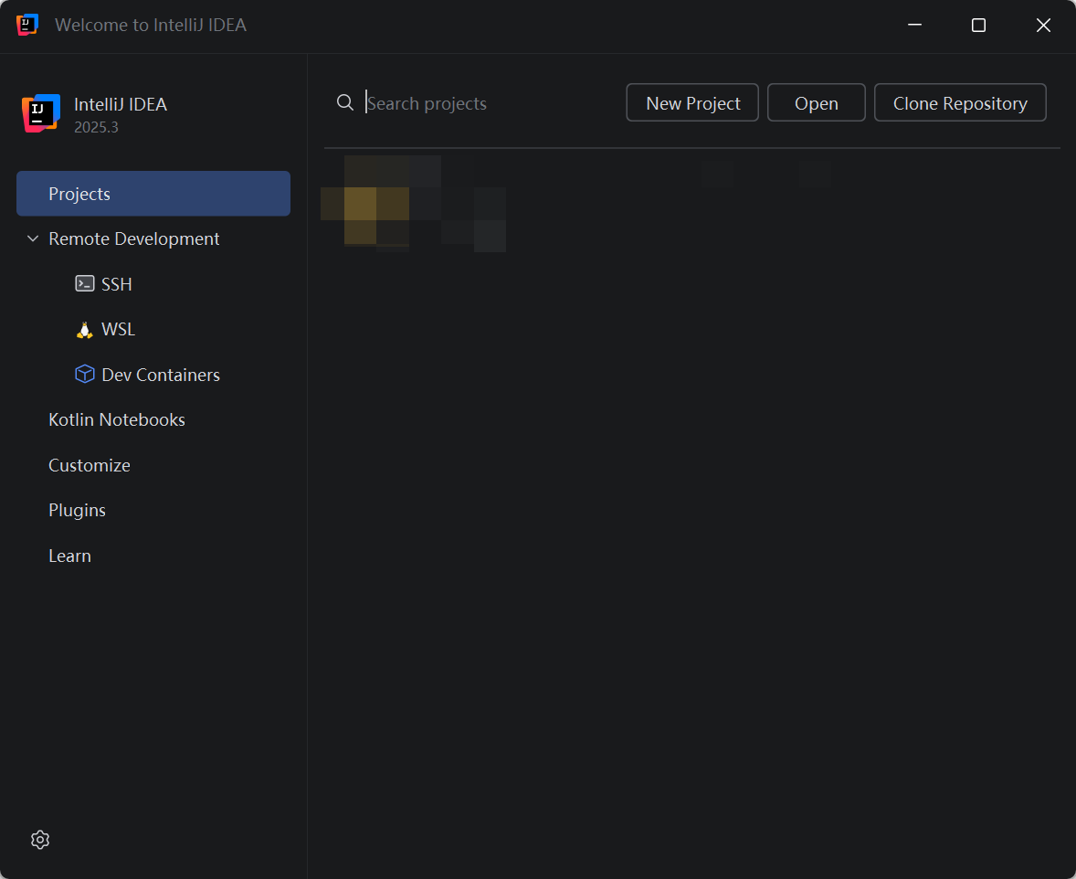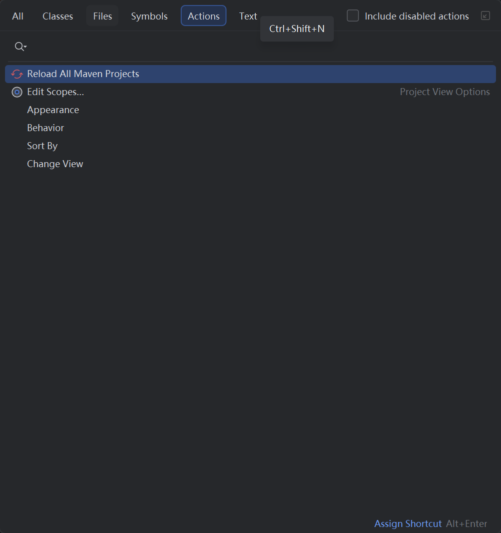 点击项目所在的侧边栏,ctrl + shift + a 调出如下界面