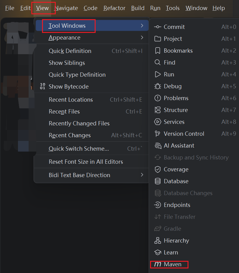 进入 view 下的 tool windows 中点击 maven 即可,该方法适用于 编译器识别到这是一个 maven 项目,但是图标被意外隐藏了
