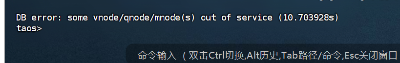 涛思库异常:DB error: some vnode/qnode/mnode(s) out of service (10.703928s)