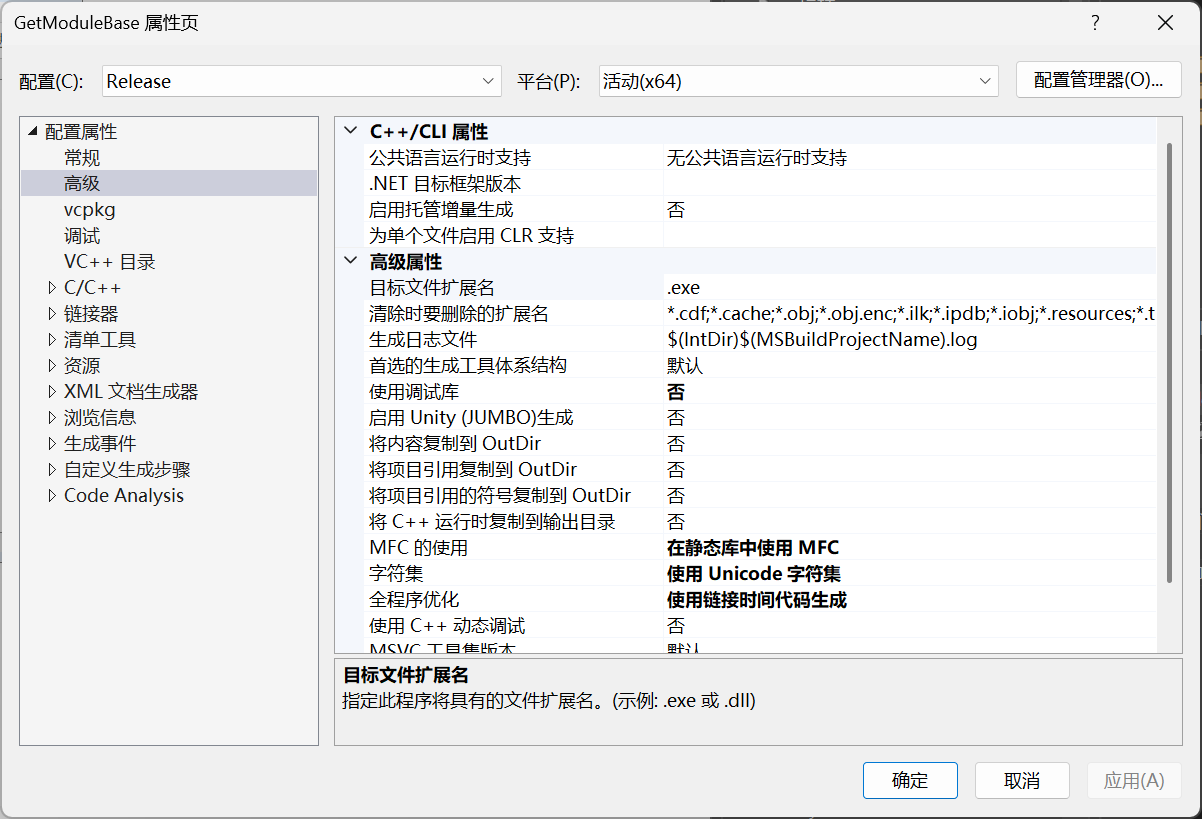 - 使用 MFC:项目属性 → 常规 → 使用 MFC → "在共享 DLL 中使用 MFC" 或 "在静态库中使用 MFC"。