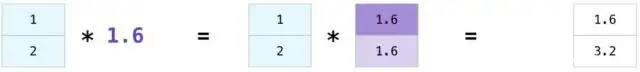 比如说一个一维数组乘以一个数字,相当于一维数组里每个元素都乘以这个数。