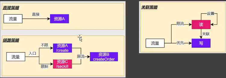 - 关联:对数据库中的某个资源同时又读请求和写请求,在有对资源进行写入的情况下,回对读的请求进行流量限制。