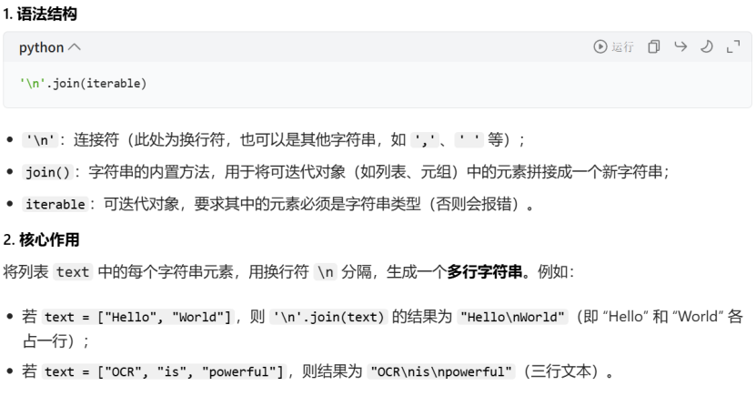 代码为:列表推导式,从 result 列表中提取每个文本区域的识别结果(即 item[1]),最终生成一个纯文本列表。