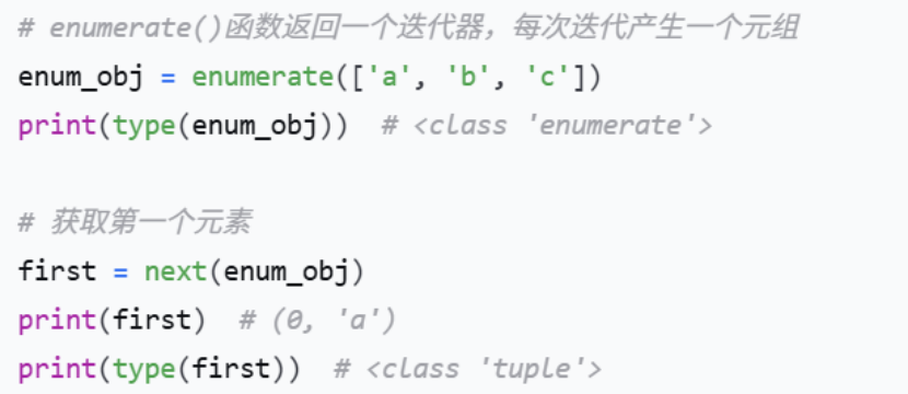 1,enumerate 不是元组,而是一个内置函数,它返回一个枚举对象(迭代器)。